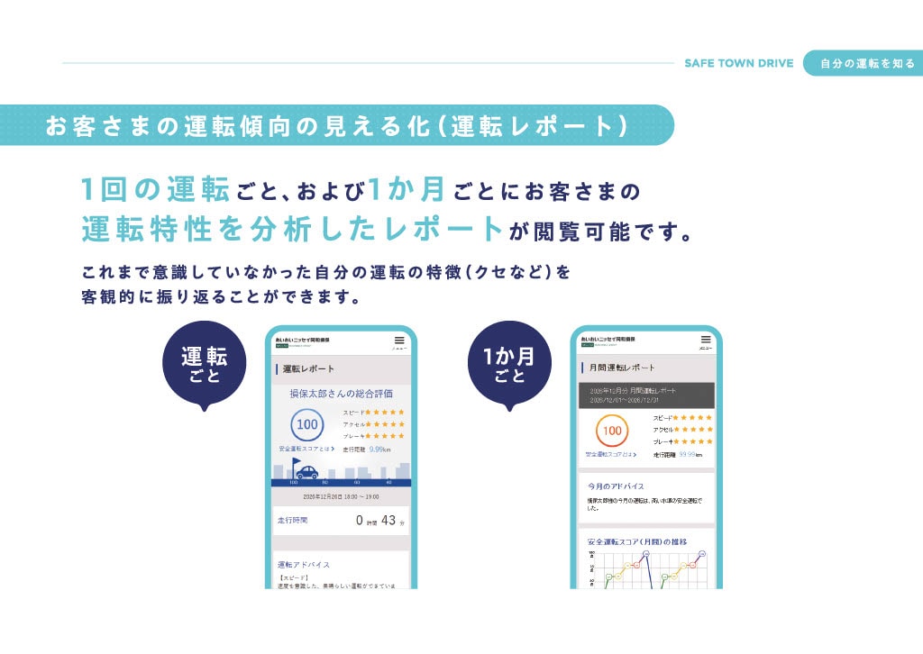運転レポートを通じて、自分の運転を客観的に知ることで、さらなる安全運転を目指すことができます。