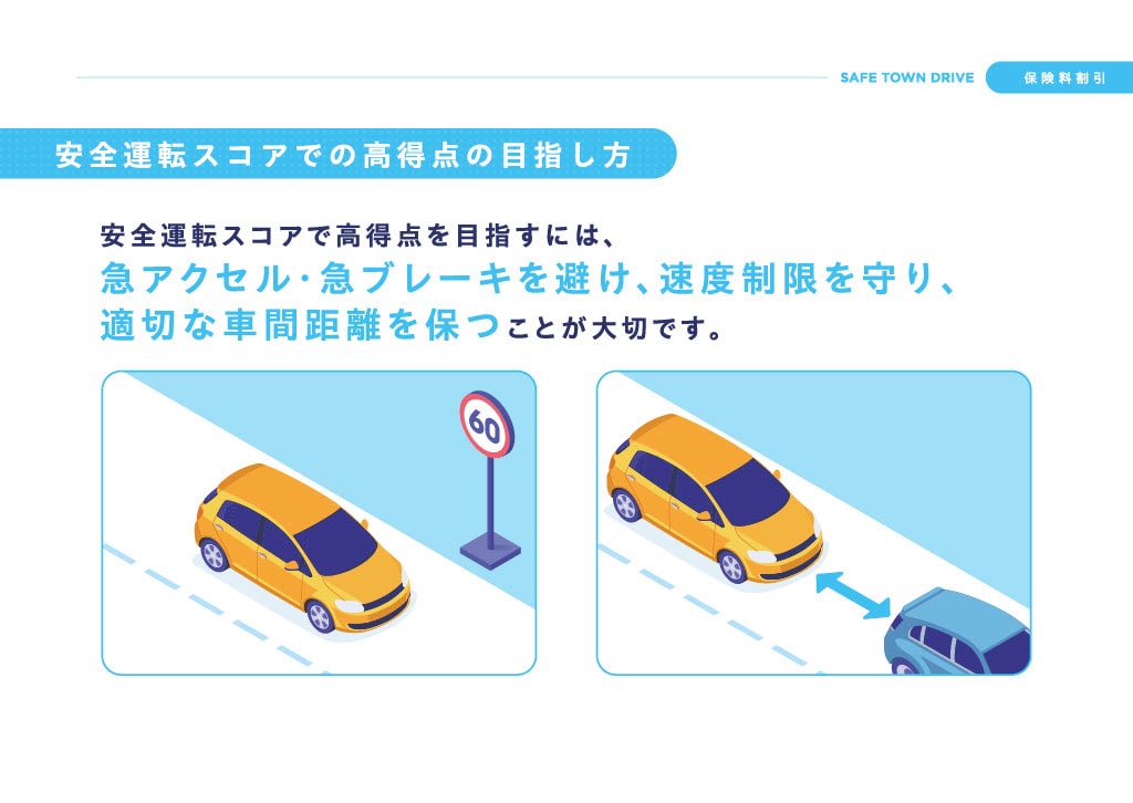 急アクセル・急ブレーキを避け、速度制限を守り、適切な車間距離を保つことが大切です。最大の割引率獲得を目指して、安全運転の取組みを継続しましょう。